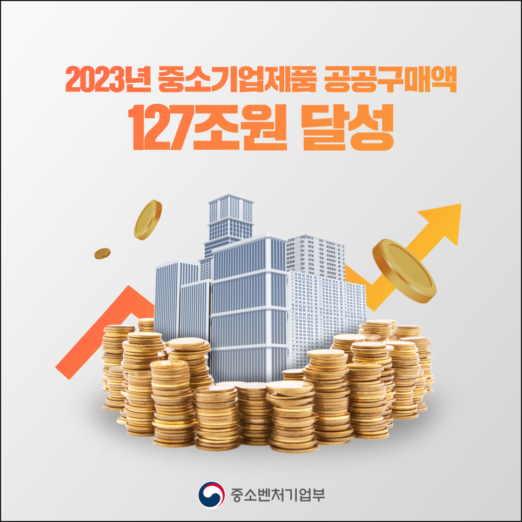중소벤처기업부(장관 오영주, 이하 중기부)는 2023년 공공기관의 중소기업제품 구매금액이 127.3조원으로 당초 구매계획이었던 118.4조원을 크게 초과 달성하였다고 23일 국무회의에서 밝혔다.