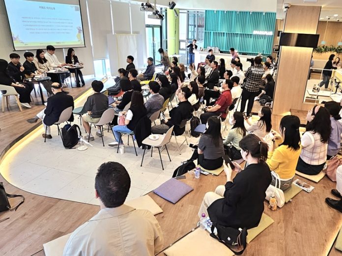심포지엄 세션 1에서는 한반도 임팩트 메이커스 프로그램 실무자인 탈북민 출신 박은희 매니저, 북한 인권 활동가로 참여했던 북한개혁방송의 김정환 기자, 프로그램 수상 팀 리더로 활약했던 탈북민 오강민 청년, 남한 청년 이정인, 박연경 참가자들이 함께했다.
