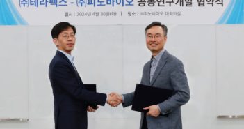 그래디언트의 바이오 자회사인 테라펙스(대표이사 이구)는 암환자를 위한 차세대 ADC 기술 연구 개발을 위해 항체-약물 접합체(Antibody-Drug Conjugate, 이하 ADC) 전문 바이오텍인 피노바이오(대표이사 정두영)와 공동 연구 계약을 체결했다고 30일 밝혔다. 이번 계약에 따라 양사는 테라펙스의 표적단백질 분해제 기술과 피노바이오의 ADC 링커 기술을 결합해 새로운 분해제-링커 플랫폼을 개발하고, 이를 통해 차세대 ADC를 발굴한다는 계획이다. 현재까지 개발된 대부분의 ADC가 세포독성물질을 페이로드(payload)로 활용했다면, 이번 공동 연구에는 표적단백질 분해제를 페이로드로 사용함으로써, 정상 세포에 대한 선택성을 확보해 독성을 최소화할 예정이다. 또한 여기에 다수의 ADC 연구 개발을 통해 축적된 피노바이오의 노하우가 더해지면서 혁신 ADC 발굴 연구에 속도가 붙을 것으로 보인다. 테라펙스 이구 대표는 “이번 협력을 통해 양사의 핵심 기술이 결합되면서 신약개발에 의미 있는 공동 연구를 할 수 있을 것으로 기대된다”며 “항암 효능과 약물 안전성이 개선된 글로벌 경쟁력을 갖춘 차세대 ADC를 발굴할 수 있도록 노력하겠다”고 말했다. 피노바이오 정두영 대표는 “단백질 분해제를 접합한 ADC 개발에 대한 시장의 관심이 부쩍 높아지고 있는 지금 테라펙스와 협업하게 되어 기쁘다”며 “당사의 ADC 플랫폼의 기술력을 한 단계 더 진보 시킬 수 있는 기회인 만큼 최선을 다하겠다”고 전했다. 관련 기사 더 보기 https://www.venturesquare.net/919417