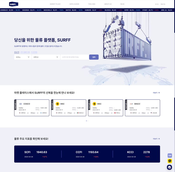 서프컴퍼니 최선진 대표는 “대부분의 산업이 IT로 전환되고 있는 가운데 해운 물류 시장은 아직 디지털로 풀어야할 숙제가 많은 산업군이다. 폐쇄적인 업계 특성으로 인해 한 건의 선적을 위해 불필요한 커뮤니케이션이 많고, 아직도 수출입 기업은 변동성이 높은 해상운임을 확인하기 위해 여러 물류 업체를 활용하여야 하는 상황이다. 서프컴퍼니는 이러한 불필요한 커뮤니케이션을 줄이고 고객에게 선적가능한 해상운임을 실시간으로 제공해주기 위한 솔루션을 올해안에 구축할 예정이다”라고 밝혔다.