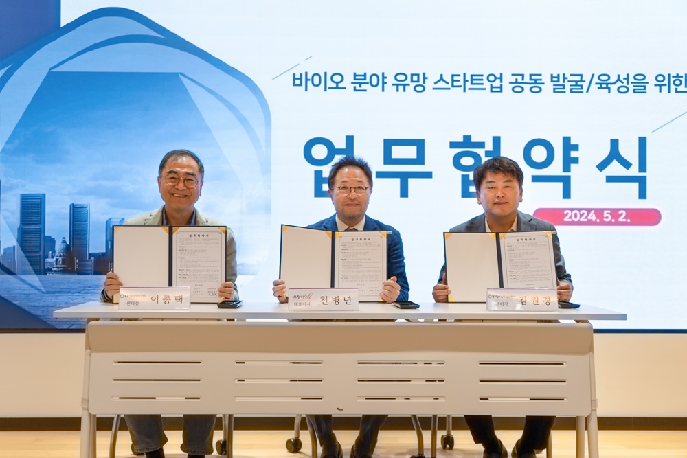경기창조경제혁신센터(이하 ‘경기혁신센터’)와 우정바이오(이하 ‘우정바이오’), 충북창조경제혁신센터(이하 ‘충북혁신센터)는 바이오 분야의 혁신 스타트업 발굴 및 오픈 이노베이션 활성화를 위한 업무협약을 체결했다고 3일 밝혔다.