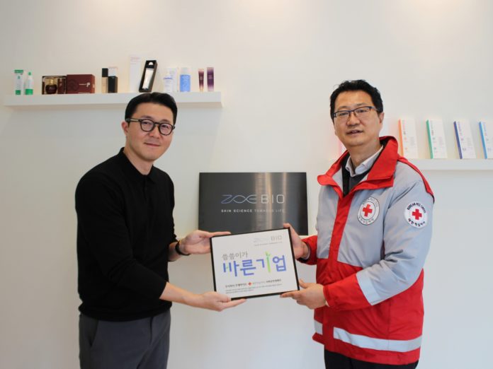 대한적십자사 서울특별시지사(회장 권영규)는 ㈜조에바이오(대표 이영신)를 ‘씀씀이가 바른기업’으로 인증하고 전달식을 진행했다고 9일 밝혔다.