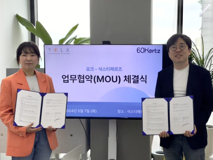 에너지 IT 소셜벤처 식스티헤르츠(대표 김종규)는 요크(대표 장성은)와 업무협약(MOU)을 체결했다고 지난 10일 밝혔다.