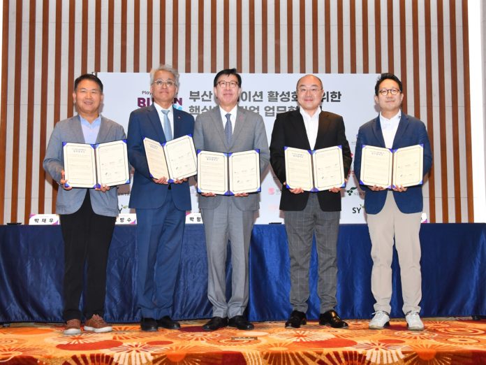 부산시(시장 박형준)는 13일 기장군 해운대비치CC에서 부산형 워케이션 활성화를 위한 수도권 핵심기업 유치 업무협약식을 진행했다.