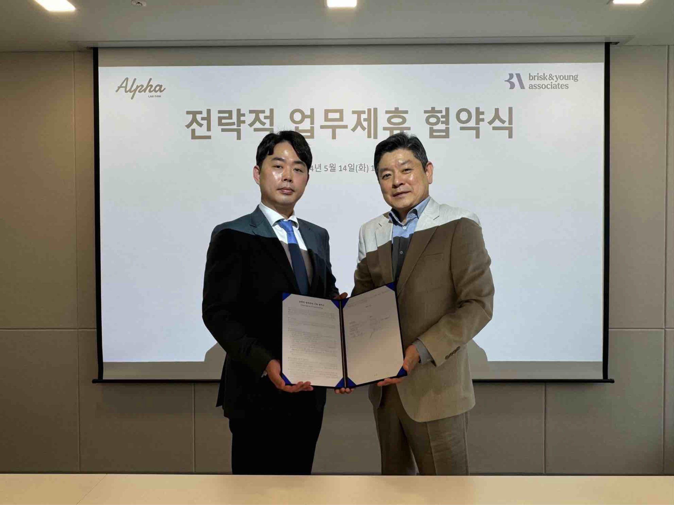 양사 협약식은 지난 14일, 서울 여의도 브리스캔영 사무실에서 유재호 브리스캔영 대표와 문성현 법무법인 알파 대표 변호사 외 양사 주요 관계자들이 참석한 가운데 진행됐다.
