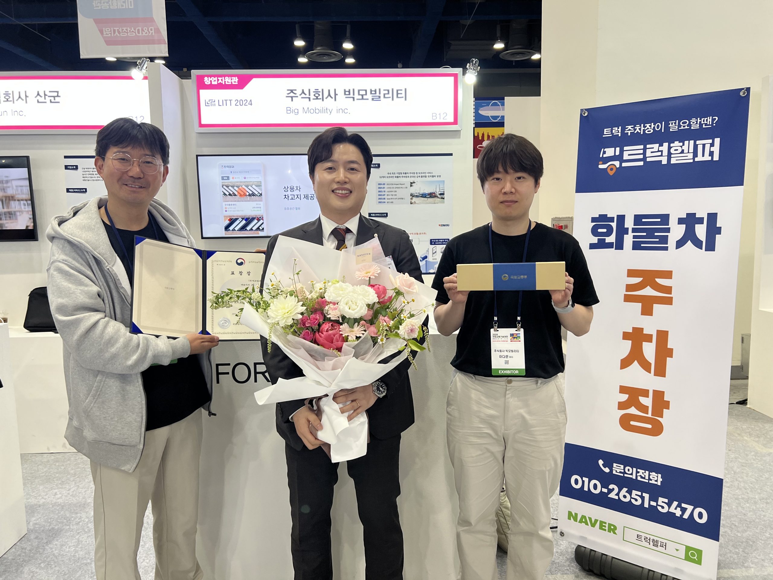 화물차 전용 주차장 온/오프라인 서비스 ‘트럭헬퍼’ 운영사 ‘빅모빌리티’의 서대규 대표가 5월 16일 코엑스에서 열린 ‘2024 국토교톡기술대전’에서 국토교통부 장관으로부터 우수 창업인 표창을 수상했다.