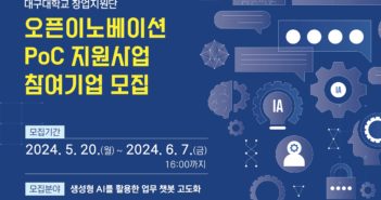 경북창조경제혁신센터(센터장 이문락, 이하 경북센터)와 대구대학교 창업지원단이 DB손해보험과 오픈이노베이션 PoC 지원사업 참여기업을 모집한다. 본사업은 스타트업 간 동반성장 협력 체계를 구축하고 기술 매칭 실증 지원 사업을 통해 신성장 동력 강화를 이끌어갈 수 있도록 하기 위해 기획되었다. 모집대상은 ▲생성형 AI를 활용한 업무 챗봇 고도화 분야에 관심 있는 전국의 업력 만 7년 이내 기업 또는 초격차 10대분야(▲시스템반도체 ▲바이오헬스 ▲미래모빌리티 ▲친환경·에너지 ▲로봇 ▲AI·빅데이터 ▲사이버보안·네트워크 ▲우주·항공·해양 ▲차세대 원전 ▲양자기술)에 해당하는 10년 이내 스타트업이면 누구나 지원 가능하다. 단, 경북도 내 본사, 지점, 연구소를 두고 있지 않은 기업은 협약 3개월 내 이전·설립 완료하여야 한다. 모집기간은 5월 20일부터 6월 7일 16:00까지이며, 경북센터 홈페이지에서 신청서를 다운로드 받아 작성 후 구글폼을 통해 접수하면 된다. DB손해보험의 서류검토를 통해 총 3개사 내외의 기업을 선정한다. 선정기업은 협업 기회뿐만 아니라 PoC 지원금(기업당 최대 4천만원)을 통해 기술 검증을 받게 된다. 경북센터 이문락 센터장은 “스타트업이 보유한 혁신적인 기술을 실증하고 시장에 적용할 수 있는 중요한 기회가 될 것”이라며 “앞으로 이러한 지역 스타트업과 대기업 간의 협력 사례가 더욱 확대되어 다양한 분야의 새로운 혁신이 이루어질 수 있도록 적극적으로 지원하겠다”고 밝혔다. 오픈이노베이션 사업에 대한 자세한 내용은 경북창조경제혁신센터 홈페이지를 통해 확인할 수 있으며, 기타문의는 투자육성팀 054)470-2658로 하면 된다. 관련 기사 더 보기 https://www.venturesquare.net/920791