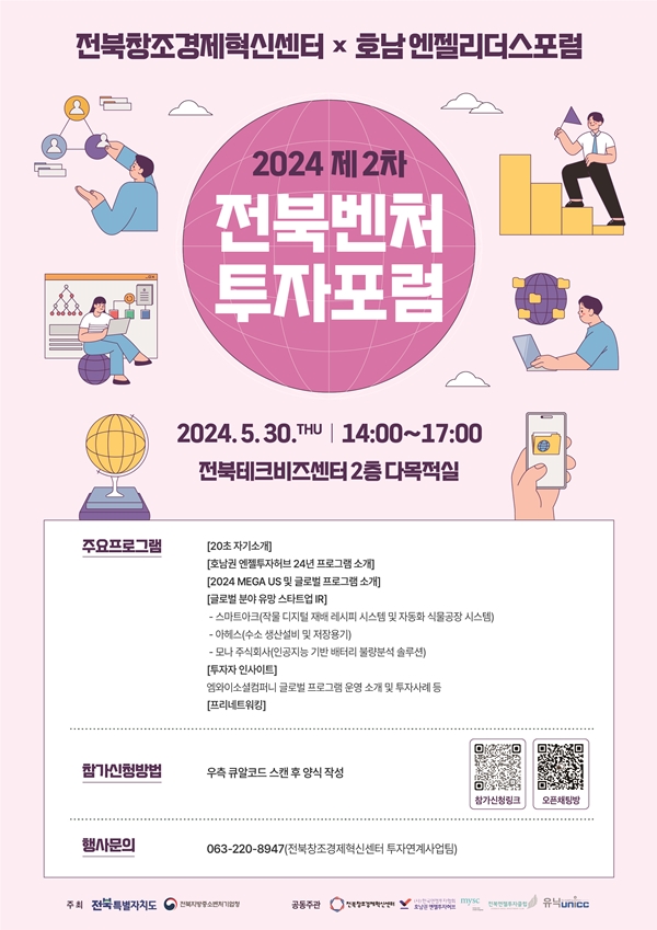 전북창조경제혁신센터(센터장 강영재, 이하 전북혁신센터)는 오는 30일 올해 두 번째 전북벤처투자포럼을 전북테크비즈센터 2층 다목적실에서 개최한다고 밝혔다.