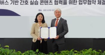 IT 보안·인증 플랫폼 기업 라온시큐어(대표 이순형, 이정아)는 동작인식 실습 가상현실(VR) 플랫폼 전문기업 그리다텍(대표 옥지원)과 ‘메타버스 기반 간호 실습 콘텐츠 협력을 위한 업무협약’을 체결했다. 이번 협약을 통해 라온시큐어는 라온 메타데미에 그리다텍의 동작인식 비대면 간호 실습 VR 콘텐츠 ‘스마트 널싱(Smart Nursing)’을 간호술기 실습 콘텐츠로 추가해 제공할 예정이다. 그리다텍의 스마트 널싱은 동작인식 기술, VR멀미 개선 기술 등 실습에 특화된 특허 기술이 접목돼 기기를 사용하지 않고 내 손으로 직접 수행하는 정밀한 실습과 VR 실습 시 발생하는 멀미를 줄일 수 있는 인터페이스를 구현했다. 또한 실시간 다중접속 동작 공유 기술도 적용돼 혼자가 아닌 여러 명도 한 화면 내에서 실시간으로 동작을 공유하며 실습을 할 수 있다. 특히 동명대학교 간호학과 교수로 재직 중인 옥지원 그리다텍 대표가 실제 간호술기 실습 현장에서 스마트 널싱을 활용하며 실사용자의 의견을 반영한 콘텐츠를 제작하고 있다. 라온시큐어의 라온 메타데미는 국내 유일한 메타버스 기반 실습 전문 플랫폼으로 높은 몰입감과 현실감 넘치는 실습 환경을 제공해 실습생의 집중도를 높여준다. 라온시큐어는 간호술기 외에도 의료 실습 전문 콘텐츠, 물리치료, 요양보호, IT 보안, 드론 등 다양한 실습 전문 콘텐츠들을 라온 메타데미에 지속적으로 추가하고 있다. 이정아 라온시큐어 대표는 “이번 그리다텍과의 협업을 통해 라온 메타데미에 다양한 간호술기 실습 라인업을 확보해 실습이 필요한 교육, 의료 기관에 제공할 수 있는 콘텐츠를 더욱 확대할 수 있게 됐다”며, “라온 메타데미에 다양한 산업 분야의 실습 콘텐츠를 도입해 메타데미 기반 실습 전문 플랫폼으로서의 역량을 강화해 나갈 것이다”고 말했다. 옥지원 그리다텍 대표는 “메타버스를 기반으로 현실감 높은 실습 환경을 제공하는 라온 메타데미를 통해 보다 많은 간호학과 재학생 및 관련 분야 실습생들이 스마트 널싱을 활용할 수 있게 됐다”며, “간호술기 실습 콘텐츠 외에도 라온 메타데미의 실험동물부검, 물리치료 등 다양한 실습 콘텐츠에 그리다텍의 동작인식 기술과 VR멀미개선 노하우 제공 등 지속적인 협력 관계를 이어갈 계획이다”고 밝혔다. 관련 기사 더 보기 https://www.venturesquare.net/927043