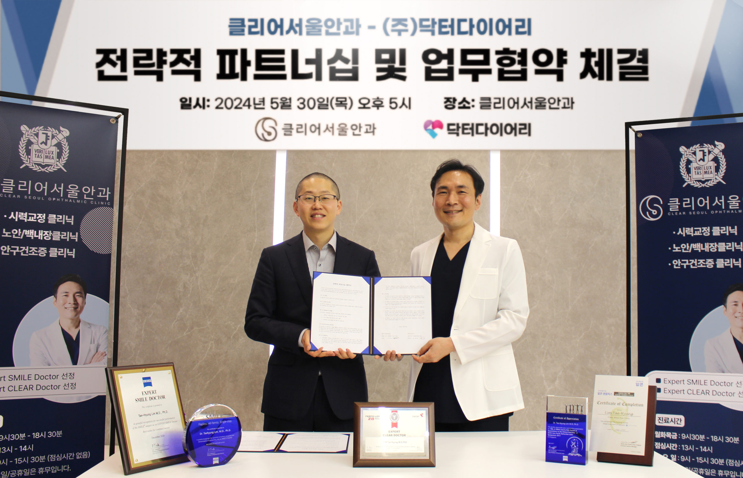 디지털 헬스케어 기업 닥터다이어리가 지난 5월 30일 클리어서울안과와 전략적 파트너십 협약을 체결했다고 5일 밝혔다. 닥터다이어리는 이번 협약을 통해 당뇨병 환자의 대표적인 합병증인 ‘당뇨병성 망막병증’ 인식 개선과 예방 캠페인을 공동으로 진행하기로 했다.