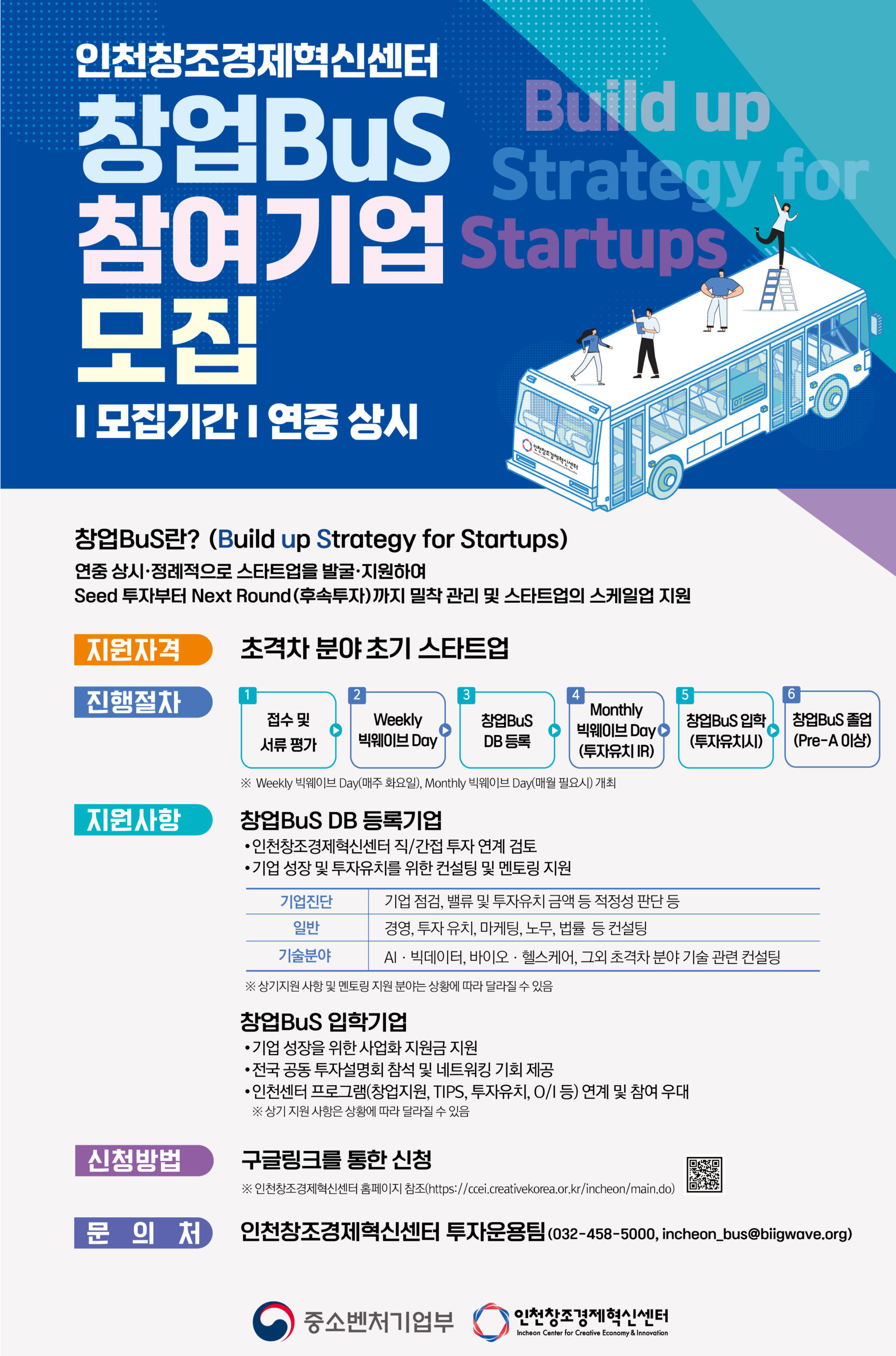 인천창조경제혁신센터(이하 인천센터)가 중소벤처기업부와 함께 창업-BuS(Build up Strategy for Startups) 프로그램(이하 창업-BuS)을 추진한다고 밝혔다.