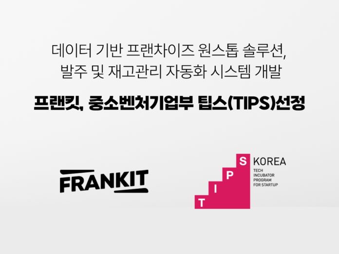 데이터 기반 프랜차이즈 발주 및 재고관리 자동화 솔루션을 개발하는 기업 프랜킷(frankit)이 중소벤처기업부의 팁스(TIPS) 프로그램에 최종 선정됐다고 10일 밝혔다.