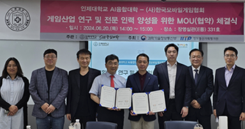 한국모바일게임협회(회장 황성익)는 20일 인제대학교 AI융합대학 및 SW중심사업단(단장 김희철)과 함께 '게임산업 연구 및 전문인력 양성을 위한 MOU(업무협약) 식을 인제대학교 장영실관 3층에서 체결했다고 21일 밝혔다. 이날 협약식에는 인제대학교에서 AI융합대학 및 SW중심대학사업단(단장 김희철), AI융합대학 이형원 게임학과 학과장, AI융합대학 김태규 게임학과 교수, AI융합대학 김경이 AI소프트웨어학부 교수, SW중심대학 이헌준 특임교수, SW중심대학 정석렬 산학협력중점교수, SW중심사업대학 이정화 책임연구원이 참석했고, 한국모바일게임협회에서는 황성익 회장, 오영환 실장이 참석했다. 이번 업무협약에서 게임산업 연구 및 전문인력 양성을 위하여 ▲SW, AI 융합산업 분야 산학 공동연구 및 사업 추진 협력 ▲SW, AI 융합산업 산업현장의 수요에 맞는 교육과정 개설 및 운영 ▲SW,AI 융합산업 특화과정 운영을 위한 인프라 구축 및 교육 관리 ▲취업, 창업 비즈니스 마인드 함양 프로그램 운영 ▲산학협력 프로젝트 운영 ▲현장실습, 인턴십 협력 ▲게임산업 발전을 위한 상호 협력 ▲기타 상호발전에 필요한 제반 사항 등의 활동을 같이하기로 했다. 김희철 AI융합대학 학장은 “이번 MOU를 통하여 낙후된 경남 지역의 게임산업을 활성화할 수 있는 인재 양성의 기회가 될 것이라 기대한다.”라고 말했다. 황성익 회장은 소감을 통해“오늘 함께 하신 분들과 게임산업과 교육에 대한 좋은 말씀을 나눌 수 있어 감사하다. 인제대학교 그리고 나아가 경남지역의 게임 인력양성에 도움이 될 만한 다양한 협력을 기대한다”고 밝혔다. 관련 기사 더 보기 https://www.venturesquare.net/924652
