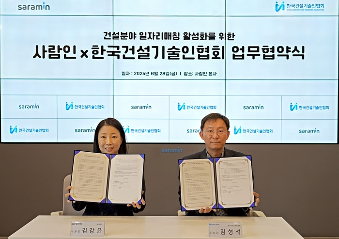사람인은 한국건설기술인협회와 ‘건설분야 일자리매칭 활성화를 위한 업무협약(MOU)’을 체결했다고 1일 밝혔다.