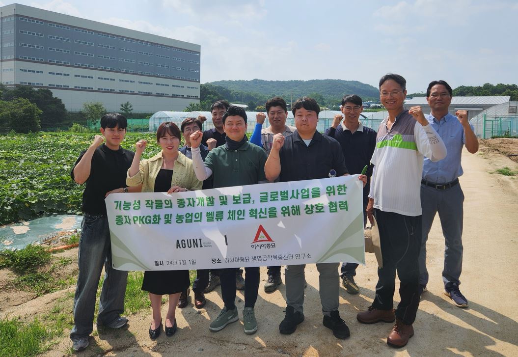 애그테크 스타트업 애그유니가 농업회사법인 아시아종묘와 종자 개발 및 재배를 위한 파트너십을 맺고 기능성 작물 맞춤 대량생산에 나선다고 밝혔다. 아시아종묘가 육종 연구와 개발을 통해 종자를 보급하고, 애그유니가 이를 원물로 생산해 제약사 납품을 추진한다는 구상이다.