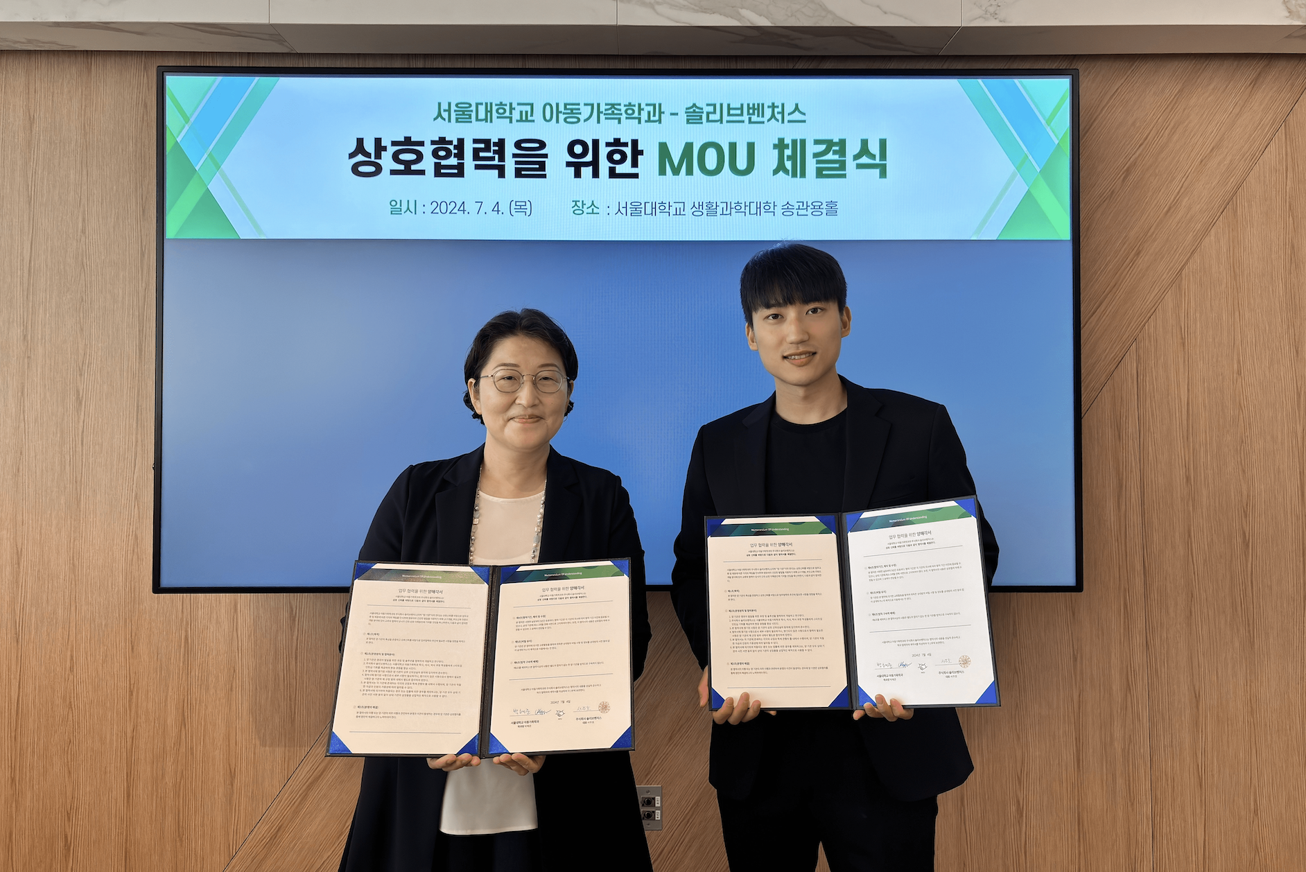 (주)솔리브벤처스는 서울대학교 아동가족학과와 상호협력을 위한 양해각서(MOU) 체결식을 진행했다고 5일 밝혔다.