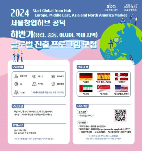‘2024 서울창업허브 공덕 하반기 글로벌 진출 프로그램’은 오는 22일까지 스타트업 플러스 홈페이지에서 참가신청이 가능하다.