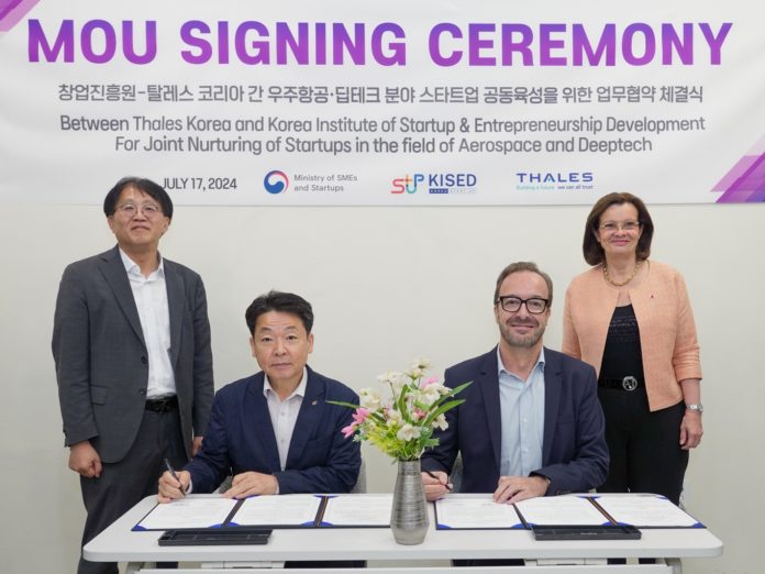 창업진흥원(최열수 원장 직무대행)은 17일 강남취·창업허브센터(서울 강남구 역삼로)에서 중소벤처기업부 조경원 창업정책관, 탈레스 그룹(이하 탈레스) 파스칼 수리스(Pascal SOURISSE) 국제사업개발 수석부사장과 면담을 갖고 스타트업 분야 협력 강화를 위한 방안 논의 및 업무협약 체결을 했다고 밝혔다.