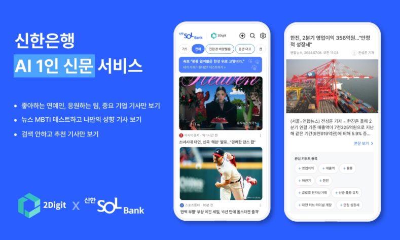 투디지트는 신한은행의 모바일 플랫폼 ‘SOL뱅크’에 ‘AI 1인 신문’ 서비스를 런칭했다고 19일 밝혔다.