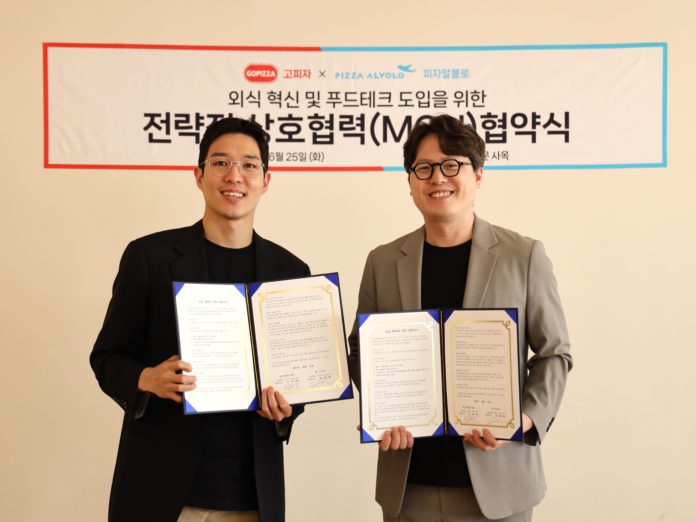 푸드테크 피자 브랜드 고피자(GOPIZZA, 대표 임재원)가 자사의 푸드테크 역량을 기반으로 토종 피자 브랜드 ‘피자 알볼로(알볼로 F&C, 대표 이재욱)’와 업무협약을 체결했다고 밝혔다.