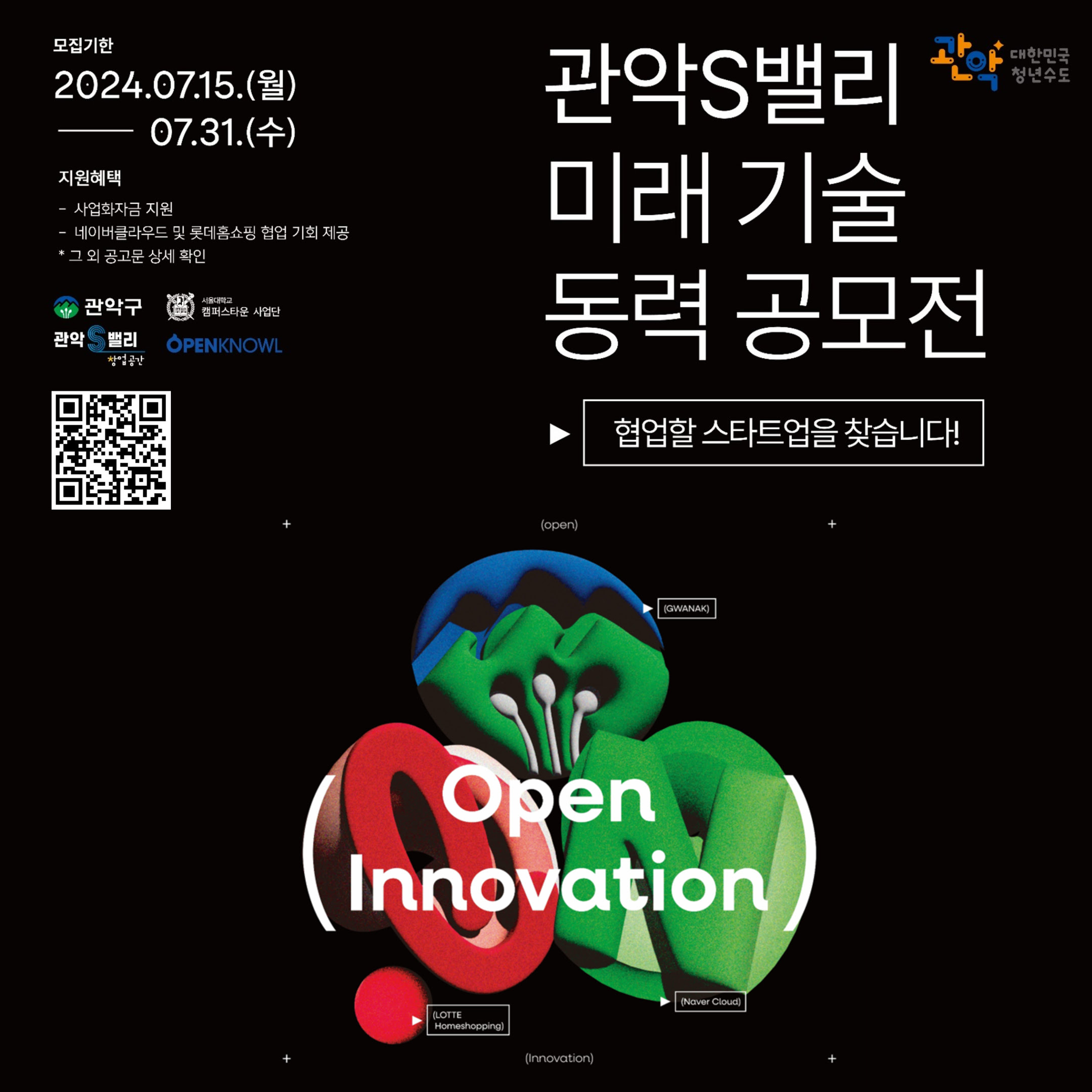 관악구는 네이버클라우드, 롯데홈쇼핑과 손을 잡고 「관악S밸리 미래기술 동력 공모 오픈 이노베이션」에 참가할 기업을 모집한다.