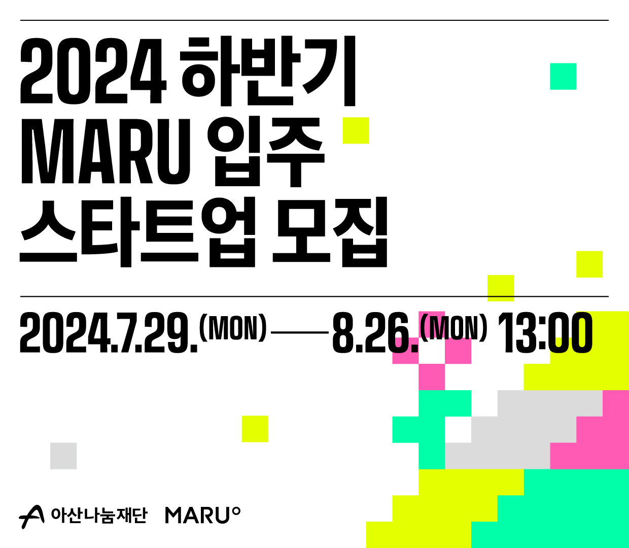 아산나눔재단이 기업가정신 플랫폼 ‘마루(MARU)’에 입주할 스타트업을 7월 29일부터 8월 26일까지 한 달간 모집한다고 밝혔다.