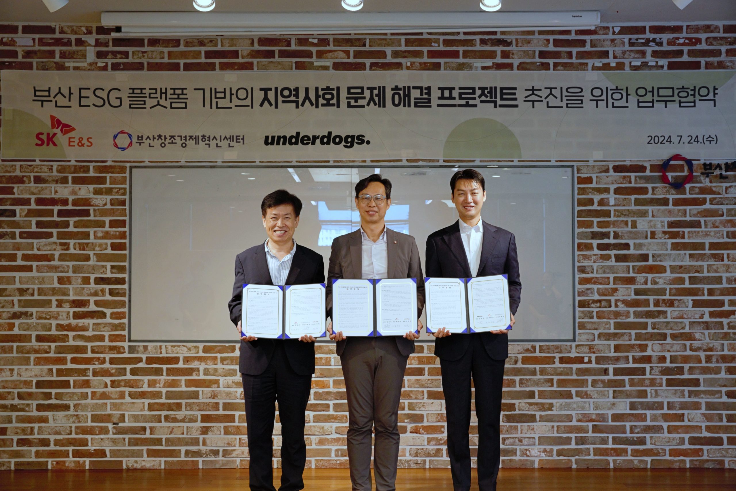 부산창조경제혁신센터(이하 ‘부산창경’)는 24일 SK E&S, 언더독스와 함께 플랫폼 기반의 지역사회 문제 해결 프로젝트 추진을 위한 업무협약을 체결했다고 밝혔다.