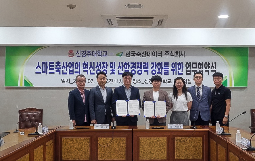 한국축산데이터가 신경주대학교(이하 신경주대)와 ‘스마트축산의 혁신성장 및 산학경쟁력 강화를 위한 업무협약(MOU)’을 체결했다고 30일 밝혔다.