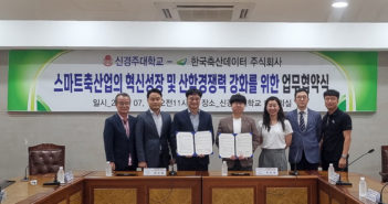 한국축산데이터가 신경주대학교(이하 신경주대)와 ‘스마트축산의 혁신성장 및 산학경쟁력 강화를 위한 업무협약(MOU)’을 체결했다고 30일 밝혔다. 이번 협약은 양측의 협력을 통해 스마트축산을 활성화하고 국내 축산업 경쟁력을 제고하기 위해 이뤄졌다. 한국축산데이터의 스마트축산 기술력과 신경주대학교의 연구역량을 활용해 지역의 축우, 양돈, 양계, 낙농 등 축종별 스마트축산 기술 보급현황을 파악하고 국내 축산농가에 실질적인 도움이 될 수 있는 방안을 연구하는데 힘을 합친다. 이에 따라 양측은 ▲스마트축산 분야 인력 양성 ▲스마트축산 기술 확산 ▲지역 축산식품 유통구조 확대 및 수출 도모 등에서 적극 협력하기로 했다. 또, 양측은 향후 신경주대에 스마트축산 관련 평생교육과정을 개설하는 데도 힘을 합치기로 했다. 이번 협약을 계기로 기업과 학교가 협력해 스마트축산 교육과정을 개설하는 첫 사례를 만든다는 방침이다. 양측은 스마트축산 기술 도입의 어려움과 기술적 한계 요인을 분석해 해결방안을 모색하는 데도 함께 나선다. 또, 한국축산데이터가 운영하는 가축 디지털 헬스케어 솔루션 ‘팜스플랜’을 신경주대학교 말산업학과와 천연기념물 경주개 ‘동경이’의 혈통을 보전하기 위한 대학 부설 연구소에 적용해 활용하는 방안도 검토하고 있다. 향후 한국축산데이터는 스마트축산을 통한 경주 지역 축산업 발전을 위해 지역 축산 농가에 팜스플랜 솔루션 공급을 확대하고 이스라엘, 독일 등 스마트축산 선진국 기술을 국내 기술로 대체해 농가 부담을 줄이고 수익성을 극대화하는 방안을 모색할 방침이다. 경노겸 한국축산데이터 대표는 “이번 협약은 축산 인력 양성 등 스마트축산 활성화를 위해 산학이 협력한다는 점에서 의미가 크다”라며 “양측의 적극적인 교류와 협력으로 국내 스마트축산 경쟁력을 크게 높일 수 있기를 바란다”라고 밝혔다. 신경주대학교 관계자는 “한국축산데이터와의 협력이 지역 축산 농가 고충 해결을 위한 실질적인 방안을 마련하는 계기가 될 것”이라고 말했다. 관련 기사 더보기 https://www.venturesquare.net/927390