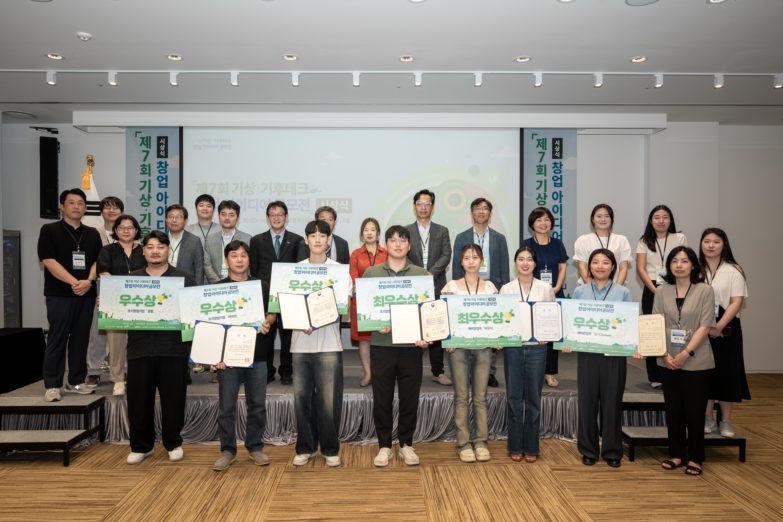 부산지방기상청(청장 이은정)과 부산창조경제혁신센터(센터장 김용우), 부산대학교 산학협력단(단장 강정은)이 공동 추진한 ‘제7회 기상·기후테크 창업 아이디어 공모전’의 시상식을 6일 농심호텔(다이아몬드홀)에서 진행했다.