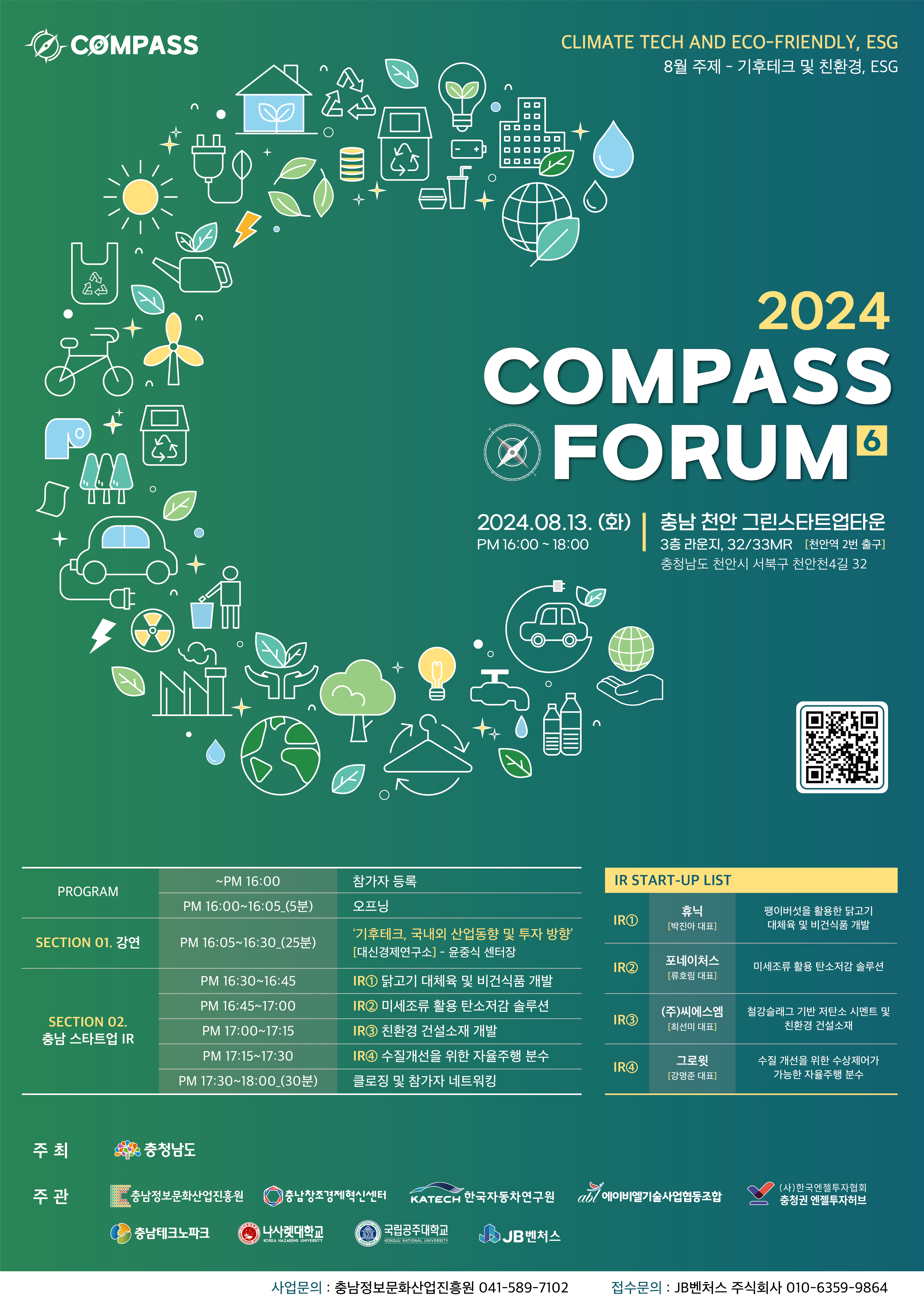 충남 컴퍼스 포럼 하반기 협력 운영사인 JB벤처스는 “이번 하반기 컴퍼스 포럼에 협력할 수 있게 되어 기쁘다며, 앞으로 유망한 스타트업들이 컴퍼스 포럼을 통해 인사이트는 물론 투자 기회까지 가져갈 수 있도록 노력하겠다”라고 말했다.