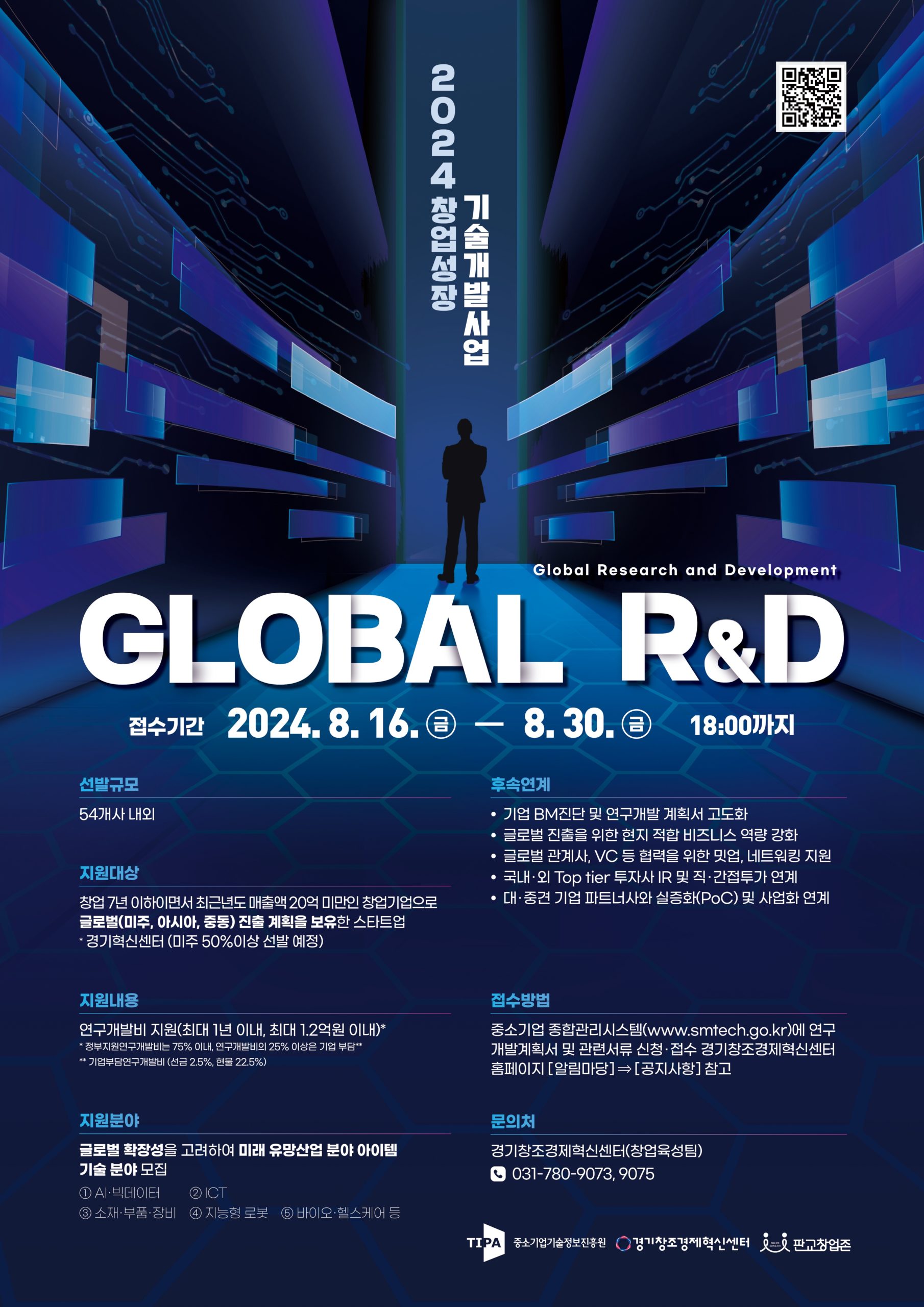 경기창조경제혁신센터(이하 경기혁신센터)는 ‘2024년 창업성장기술개발사업(글로벌 R&D)’에 추천할 창업기업을 8월 16일부터 8월 30일까지 모집한다고 밝혔다.