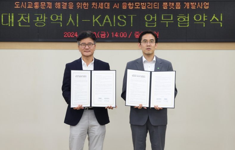 대전시와 KAIST는 과학기술정보통신부 주관 ‘2024년 소프트웨어 컴퓨팅산업 원천기술 개발사업’ 공모에 최종 선정된 가운데 지난 23일 ‘차세대 인공지능(AI) 모빌리티 연구’를 위한 업무협약을 체결했다.