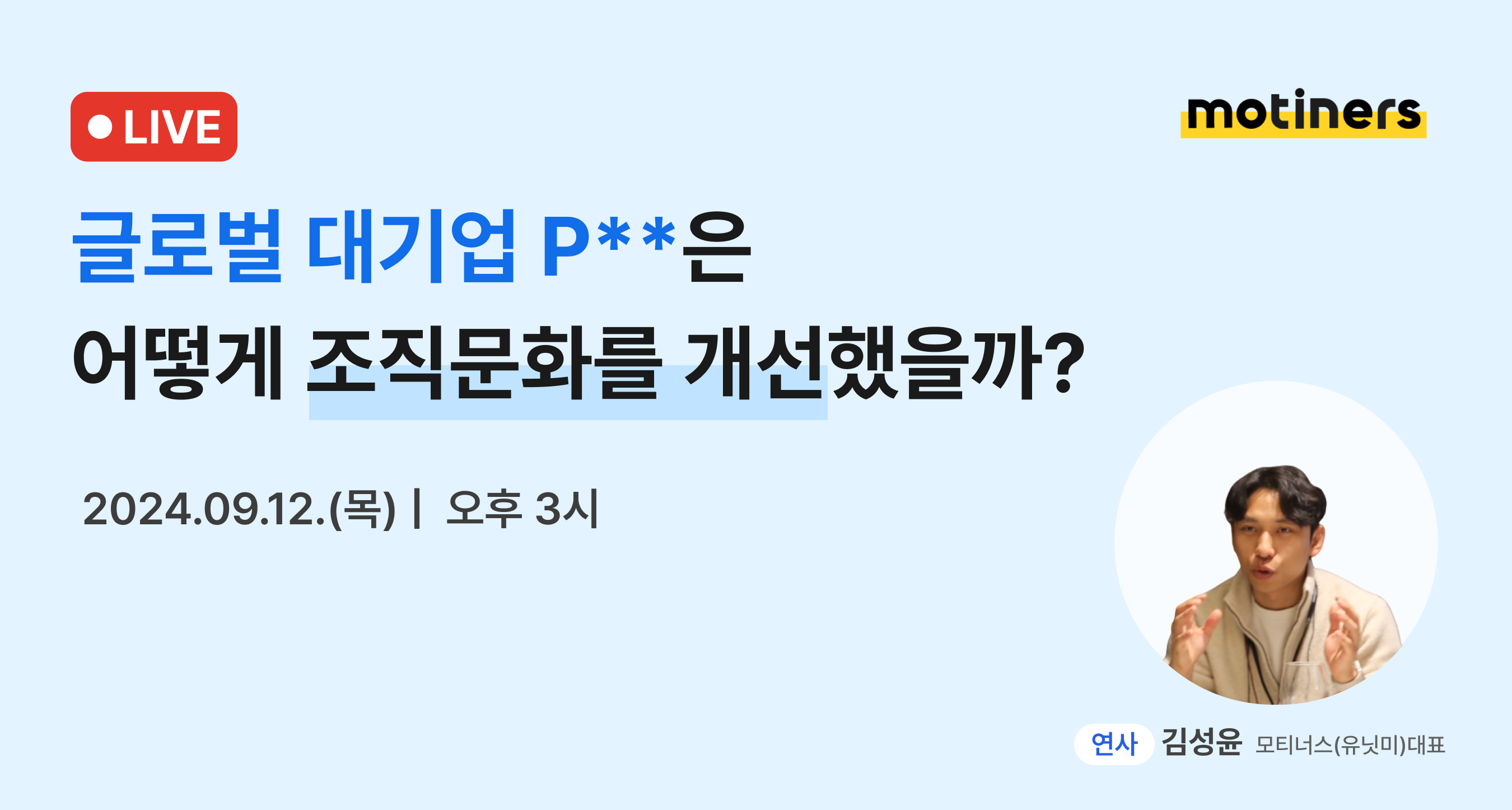 모티너스가 글로벌 외국계 기업, 은행권, 공공기관에서 진행한 조직문화 개선 사례를 주제로 웨비나를 개최한다.