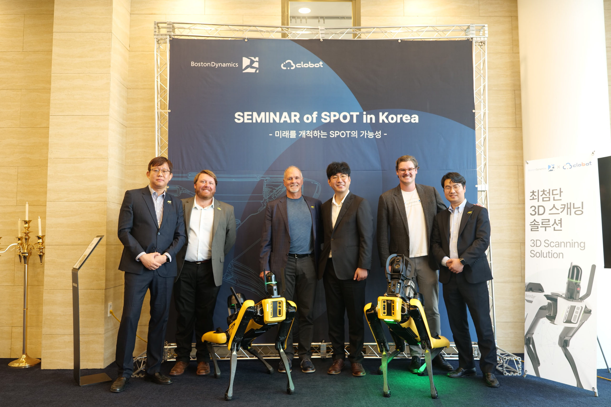 클로봇이 보스턴다이나믹스(Boston Dynamics)와 함께 ‘사족보행로봇 SPOT(스팟)의 가능성과 미래’를 주제로 하는 세미나를 25일 서울 마리나 파크에서 개최했다.