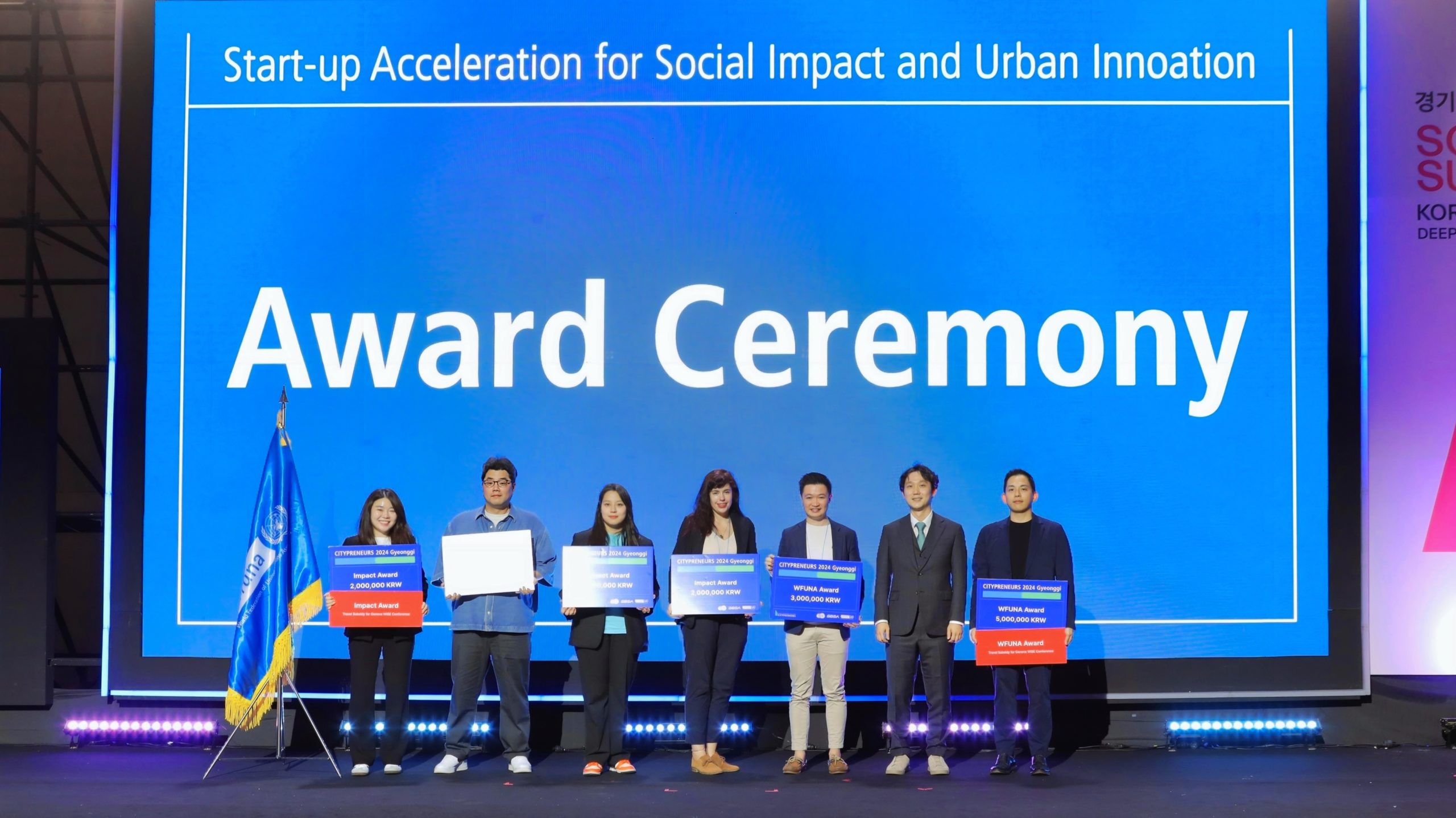 다회용기 서비스 기업 잇그린이 지난 26일, 유엔협회세계연맹(WFUNA)이 주최한 ‘씨티프레너스 2024 경기’ 대회에서 임팩트 어워드를 수상했다.
