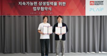 로봇 플랫폼 전문기업 레인보우로보틱스는 인공지능(AI) 솔루션 기업 플라잎과 지속가능한 상생협력을 위한 업무협약(MOU)을 체결했다고 30일 밝혔다. 이번 업무협약을 통해 양사는 AI 로봇을 활용한 산업용 솔루션 패키지 개발에 나선다. 레인보우로보틱스가 개발한 이동형 양팔로봇에 플라잎의 AI 소프트웨어를 적용해 고도화된 산업 현장에 적용할 수 있는 자율제조 및 조립 솔루션을 함께 개발하는 등 협력체계를 구축해 나갈 계획이다. 레인보우로보틱스는 AI 전문가용 연구 플랫폼 RB-Y1를 정식 판매를 진행하고 있다. RB-Y1은 한 팔당 7 자유도를 갖는 양팔을 가지고 있으며 폭넓은 작업반경을 위해 6 자유도의 외다리를 가지며, 바퀴형 모바일 플랫폼을 갖춘 휴머노이드 형태의 로봇이다. 자율 이동을 위해 라이다(LiDAR) 시스템을 채용하고 있으며 AI 개발자가 연구 목적으로 쉽게 활용할 수 있도록 다양한 API와 옵션을 제공한다. 플라잎은 로봇의 눈과 행동, 그리고 감각에 대한 인공지능을 개발하여 완전 자율형 로봇을 구현하는 AI 로봇 솔루션 기업이다. 플라잎의 PALS(PLAiF’s Adaptive Learning System)는 실패를 통해 로봇이 스스로 학습할 수 있도록 하는 차별화된 기술로 기존 룰베이스 로봇이 풀지 못하는 다양한 문제를 해결하고 사람만이 가능한 일을 해결할 수 있다. 이정호 레인보우로보틱스 대표는 ”AI를 탑재한 이동형 양팔로봇은 제조 현장의 패러다임을 바꿀 것으로 기대한다. 이동형 양팔로봇을 통해 제조와 이송을 하나로 결합해 자율 제조를 구현하는 ‘게임 체인저’ 역할을 수행해 나가겠다”고 전했다. 플라잎 정태영 대표는 “이번 업무협약을 통해 국내 최고 수준의 레인보우로보틱스 로봇 플랫폼과 플라잎의 독자적 AI 기술을 결합하여 기존에 없던 혁신적 로봇 솔루션의 창출을 기대한다. 이를 통해 당사는 사람이 단순 반복적인 일에서 벗어나 창의적이고 가치있는 일을 하는 미래를 만들어 나가겠다”고 말했다. 관련 기사 더보기 https://www.venturesquare.net/938413