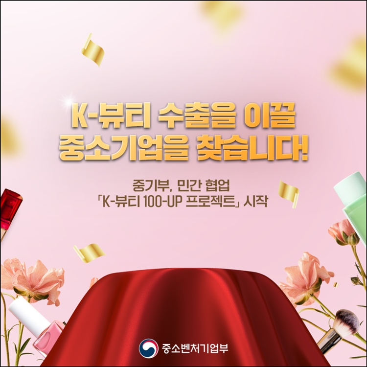 중소벤처기업부(장관 오영주, 이하 중기부)는 아마존·한국콜마·코스맥스, 올리브영, 신세계 면세점과 협업하여, K-뷰티 수출 유망 중소기업을 발굴·육성하는 ‘K-뷰티 100-UP 프로젝트’에 참여할 기업을 모집한다고 밝혔다.
