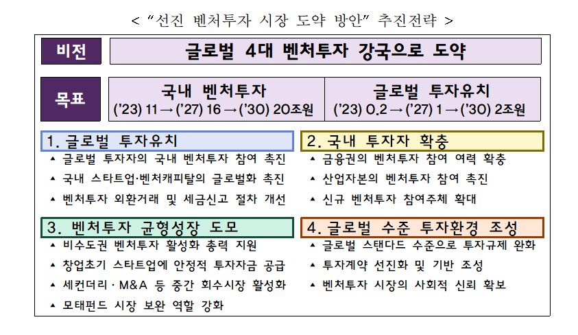 - 넷째, 글로벌 수준의 벤처투자 환경을 조성한다.