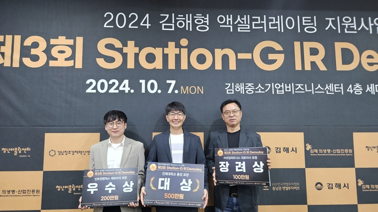 경남창조경제혁신센터는 지난 7일 김해중소기업비즈니스센터에서 개최한 제3회 스테이션지 IR(투자제안) 데모데이에 참가한 예비창업패키지 지원기업들이 전원 수상하는 쾌거를 거두었다고 밝혔다.