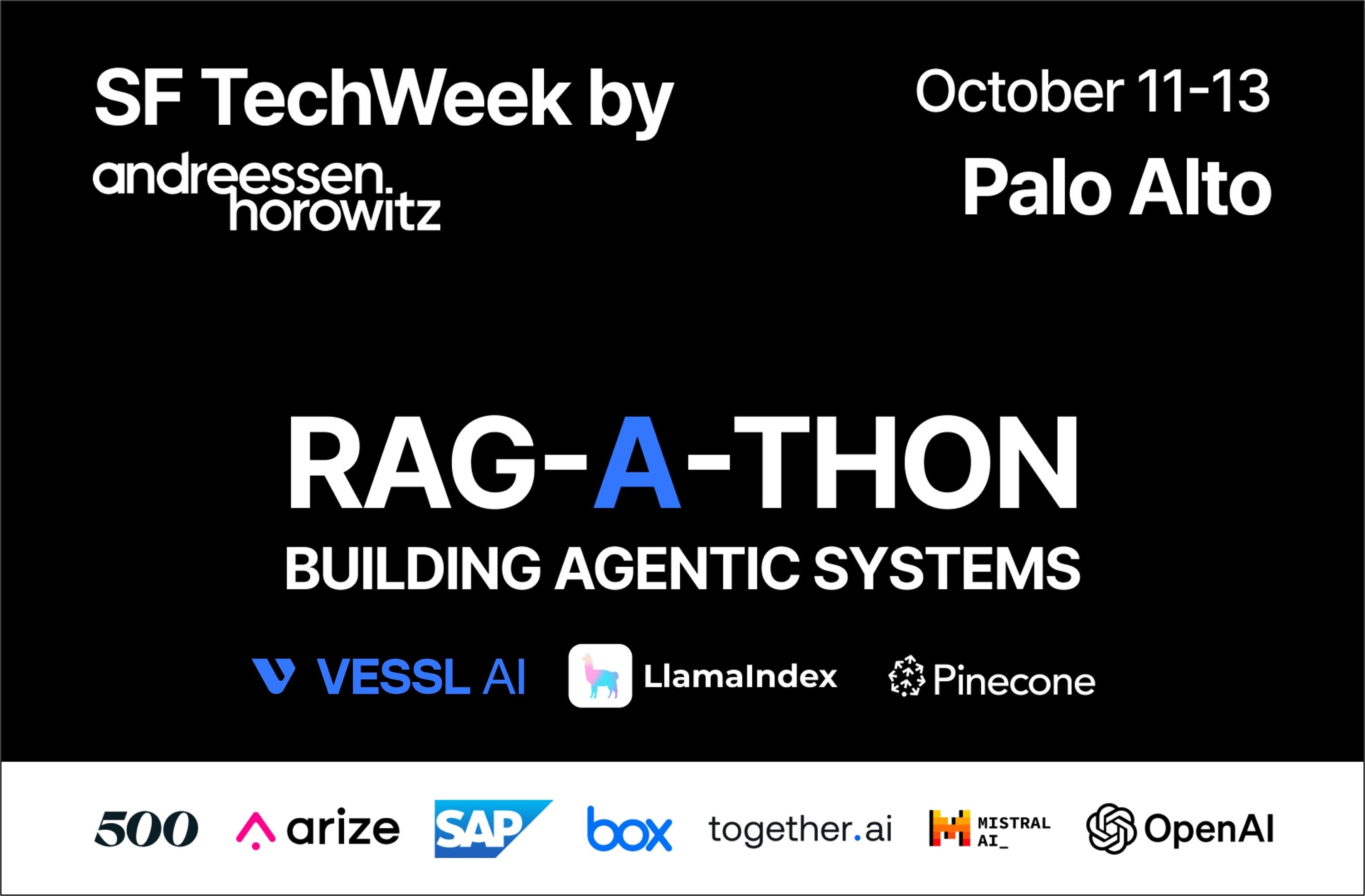 AI 통합 플랫폼 운영사 베슬에이아이(VESSL AI)가 오는 11일부터 13일(현지시간)까지 실리콘밸리 팔로알토에서 AI 해커톤 ‘Agentic RAG-A-THON’을 개최한다. 이번 행사는 AI 스타트업 라마인덱스(LlamaIndex), 파인콘(Pinecone)과 공동으로 주최하며, 글로벌 VC 앤드리슨 호로위츠(a16z)가 주관하는 샌프란시스코의 연례 IT 행사 ‘테크위크’의 일환으로 진행된다.