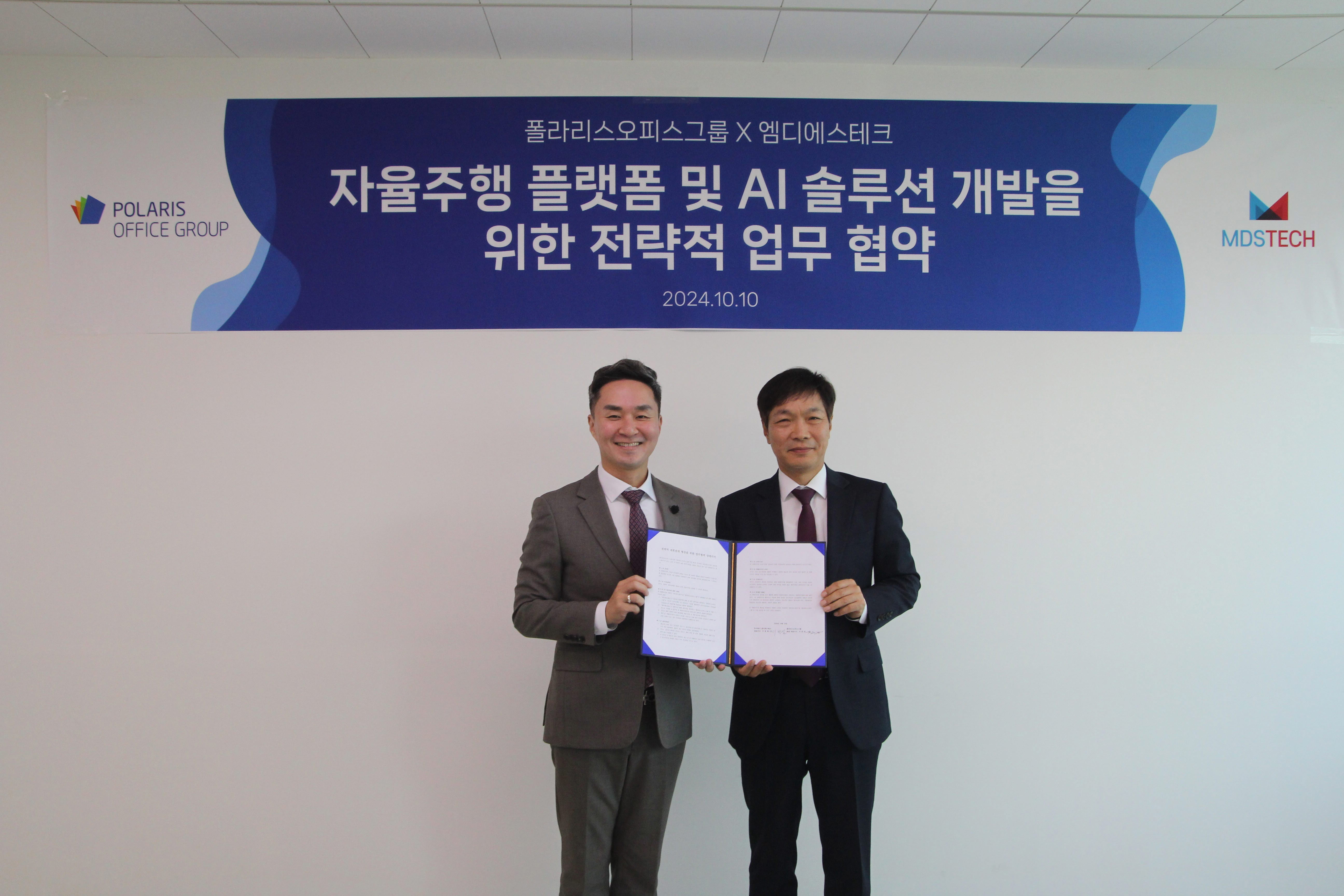 AI 및 임베디드 솔루션 전문기업 MDS테크가 폴라리스오피스그룹과 자율주행 플랫폼 및 AI 솔루션 개발을 위한 전략적 업무협약(MOU)을 체결했다고 밝혔다. 이번 협약을 통해 양사는 자사의 기술력을 결합하여 혁신적인 AI 솔루션과 자율주행 플랫폼을 개발, 상용화를 목표로 협력할 예정이다.