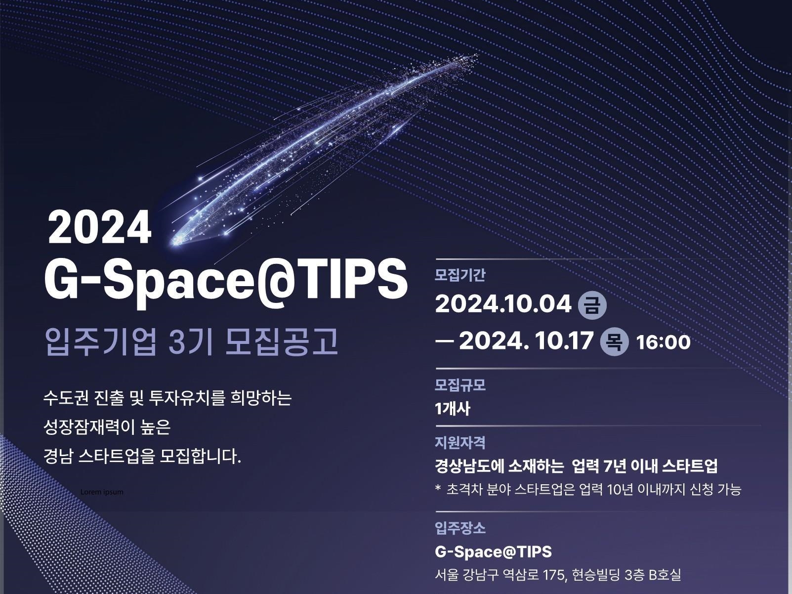경상남도는 도내 유망 창업기업의 수도권 투자유치를 지원하는 사업인 ‘경남 창업 수도권 거점(G-Space@TIPS)’에 입주할 기업을 17일까지 모집한다고 밝혔다. 지난해 기준 국내 벤처투자의 73%가 수도권에서 이루어지고 있는 상황에서 경남도는 비수도권 경남의 유망 창업기업들이 성장 자금을 적기에 유치할 수 있도록 2023년 9월 국내 벤처투자의 최전선인 서울 강남 팁스타운에 ‘G-스페이스 팁스(G-Space@TIPS)’를 개소하였다. 입주기업은 2~3인실의 업무공간을 제공받으며, 수도권 투자자와의 일대일 심층 투자설명(IR), 상담을 하는 G-시연회(DEMO DAY) 참여, 입주기업 대상 간담회와 사업자문 등의 창업 육성 프로그램이 제공된다. 입주 기간은 10월 25일부터 6개월이며, 연장심사를 통해 6개월 단위의 입주 기한을 2회까지 연장할 수 있어 최대 18개월까지 입주할 수 있다. 모집대상은 경남에 소재한 업력 7년 이내의 창업기업이며, 초격차 분야는 업력 10년 이내까지 가능하다. 자세한 사항은 경남창조경제혁신센터의 공고문에서 확인할 수 있다. 입주기업은 서류심사와 기업발표 평가를 거쳐 10월 24일에 최종 발표될 예정이다. 한편 지난해 ‘G-스페이스 팁스’ 입주기업인 ‘그린백스’는 2023년 10월 중기부 팁스 사업에 선정되어 연구개발 자금 5억원을 확보하는 성과를 얻었고, 2024년에는 총 5건의 정부‧지자체 지원사업에 선정되어 약 5억원을 지원받았으며 투자사로부터 2억원의 투자를 유치했다. 강두순 경남도 창업지원과장은 “G-스페이스 팁스는 참여기업의 만족도가 96%, 재참여 의사는 98%에 달하는 사업으로, 다양한 투자유치 지원 프로그램을 통해 경남의 유망 창업기업들이 수도권 투자자와 소통하는 거점으로 안착하고 있다”며, “올해 새로 선정된 입주기업도 적극 지원하여 기존 입주기업들이 이뤘던 성과들을 이어 나가겠다”고 말했다. 관련 기사 더 보기 https://www.venturesquare.net/940538