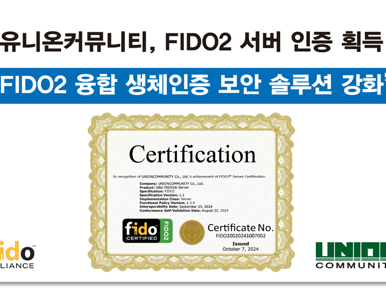 바이오인식 보안 솔루션기업 유니온커뮤니티(대표이사 신요식)는 글로벌 온라인 생체인증 표준화 기구인 FIDO(Fast Identify Online)로부터 FIDO2 서버 인증을 획득했다고 15일 밝혔다. FIDO2 인증은 기존 온라인 환경에서의 패스워드 인증 방식의 취약점을 보완하기 위해 개발된 국제표준 기술로서, PKI(Public Key Infrastructure)를 활용하여 사용자와 서버 간 상호 인증을 통해 보안성을 대폭 강화하는 것이 특징이다. FIDO 인증은 금융, 공공기관, 의료 등 다양한 산업에서 보안 표준으로 자리 잡고 있으며, 인증된 제품의 신뢰성을 확인하는 중요한 기준으로 활용되고 있다. 유니온커뮤니티는 이번 FIDO2 서버 인증 획득을 통해 ▲강화된 보안성: 서버와 사용자 간 상호 인증으로 해킹 및 피싱 위협을 방지 ▲사용자 편의성: 비밀번호 없이 생체 정보(지문, 홍채 등)를 이용해 쉽게 인증 ▲확장성: 다양한 기기와 환경에서 일관된 보안성 유지 등 비밀번호 없이 보안성이 높고 더욱 편리한 생체인식 인증 환경을 제공할 수 있게 되었다. 유니온커뮤니티는 자사 생체인식 기반 서버인증 솔루션인 UBio-ezPass에 FIDO2 서버 인증을 적용하여 더욱 강력한 보안성을 제공할 예정이다. 특히 이번 인증 기술을 통해 생체인식 기반의 보안 솔루션을 업그레이드하여, 다양한 산업에서 더욱 신뢰할 수 있는 보안 환경을 제공할 수 있을 것으로 기대하고 있다. 신요식 유니온커뮤니티 대표이사는 "이번 FIDO2 서버 인증은 당사의 보안 솔루션이 글로벌 표준을 충족함을 입증한 것”이며, “유니온커뮤니티는 신뢰할 수 있는 생체인식 보안 솔루션을 제공하는 선도 기업으로서의 위치를 공고히 할 것"이라고 전했습니다. 한편 유니온커뮤니티는 올해 한국인터넷진흥원(KISA)로부터 국내 최초로 완제품 단말기의 위조 지문 방어력 성능 인증을 획득하고, 한국정보통신기술협회(TTA)로부터 통합 보안 솔루션인 UBio Alpeta의 GS인증을 획득하는 등 생체인식 기반 솔루션의 기술력을 검증받고 있다. 관련 기사 더 보기 https://www.venturesquare.net/932770