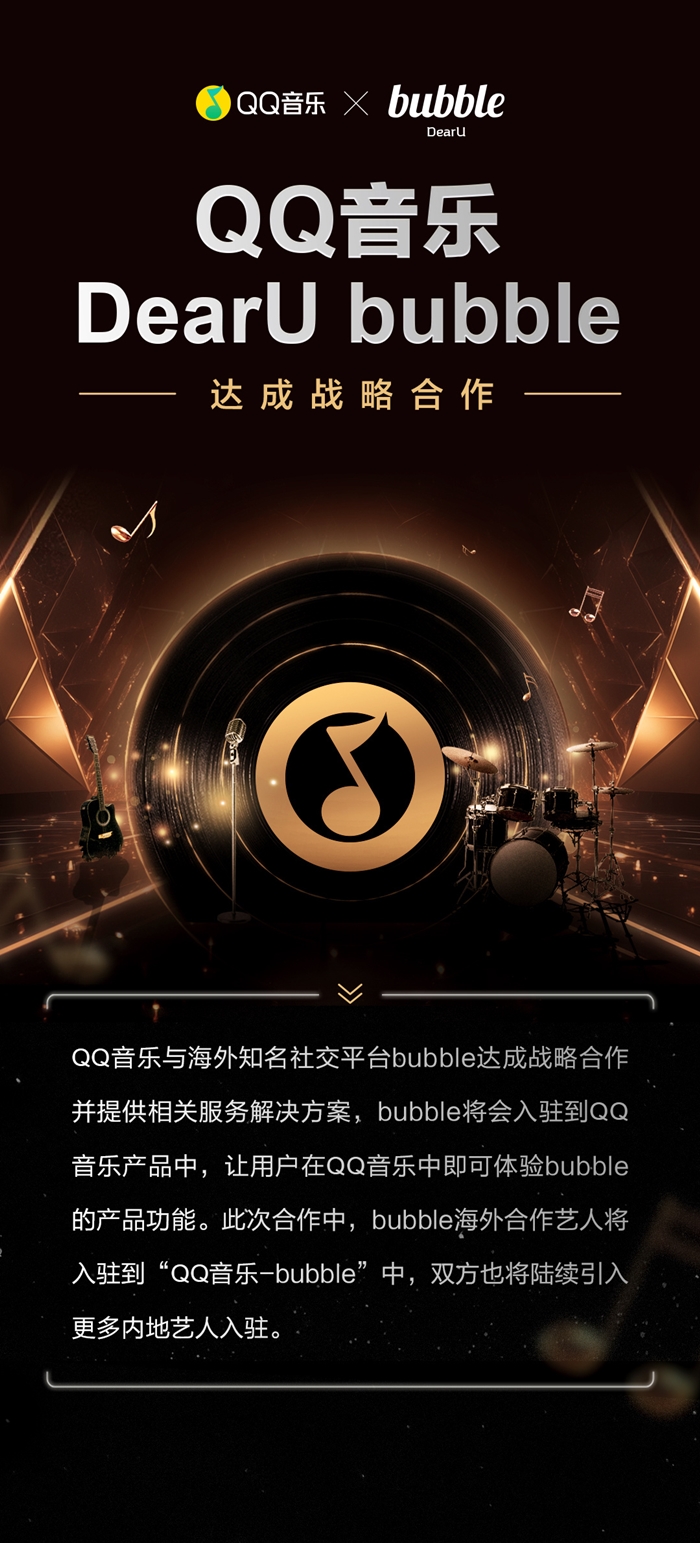 해당 소식은 중국에서 먼저 알려졌다. TME 공식 웨이보 페이지에 따르면 그룹 내 최대 음악 스트리밍 플랫폼인 QQ뮤직 내에 디어유의 ‘버블’을 오픈하여 중국 사용자들이 직접 K-POP 뿐 아니라 현지 인기 C-POP 스타들과 소통할 수 있는 기회를 제공한다. ‘QQ뮤직-버블’은 다수의 한국 및 중국 아티스트들이 대거 참여할 것으로 기대된다.