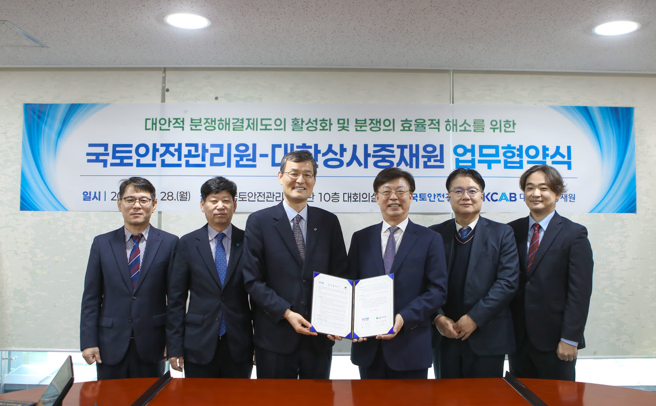 대한상사중재원(이하 ‘중재원’)과 국토안전관리원(이하 ‘관리원’)은 10월 28일 국토안전관리원 본관에서 업무협약을 맺고 양 기관 협력 증진을 약속했다.