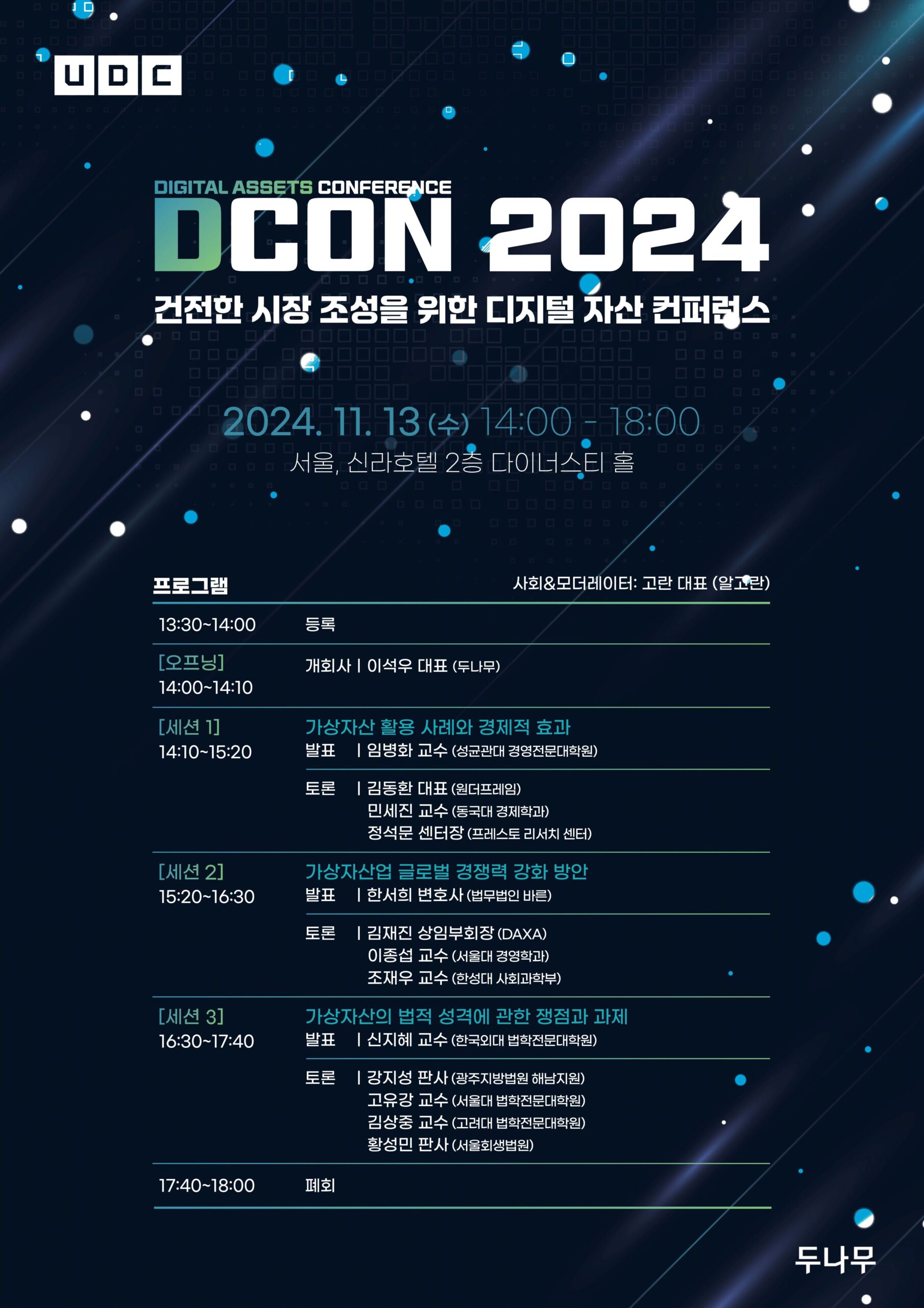 블록체인 및 핀테크 전문기업 두나무는 11월 13일 오후 2시 서울 신라호텔 다이너스티홀에서 ‘디지털자산 컨퍼런스(D-CON, 디콘) 2024’를 개최한다고 31일 밝혔다.