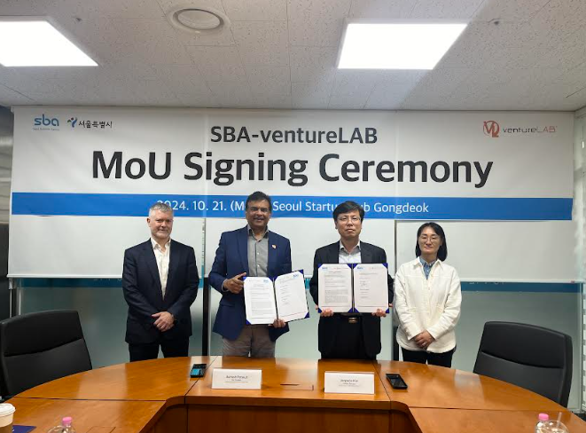 서울경제진흥원(SBA)은 지난 10월 21일 캐나다 혁신허브인 벤처랩(ventureLAB, 이하 벤처랩)과 서울-토론토간 우수 창업기업 교차지원을 목적으로 업무협약(MoU)을 체결했다고 밝혔다.