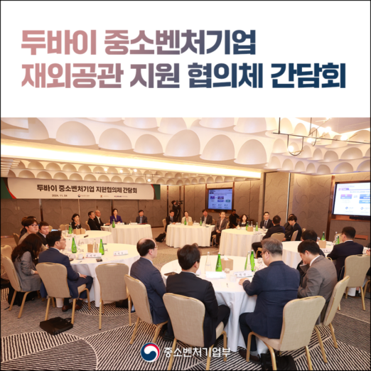 오영주 장관은 두바이 GBC 방문에 이어 ‘두바이 중소벤처기업 재외공관 지원 협의체’ 간담회에 참석하여, 그간 협의체의 운영 현황을 점검하고 우리 기업들이 두바이 현지에서 원활하게 역량을 발휘할 수 있도록 지원방안을 모색했다.