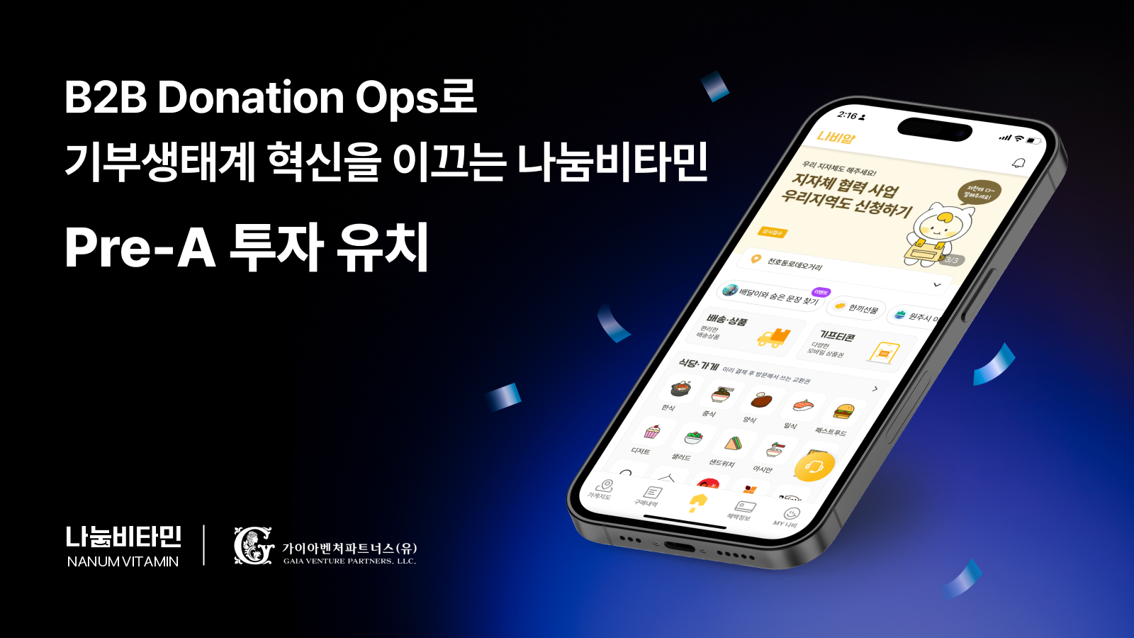 나눔비타민이 가이아벤처파트너스로부터 Pre-A 투자를 유치했다.